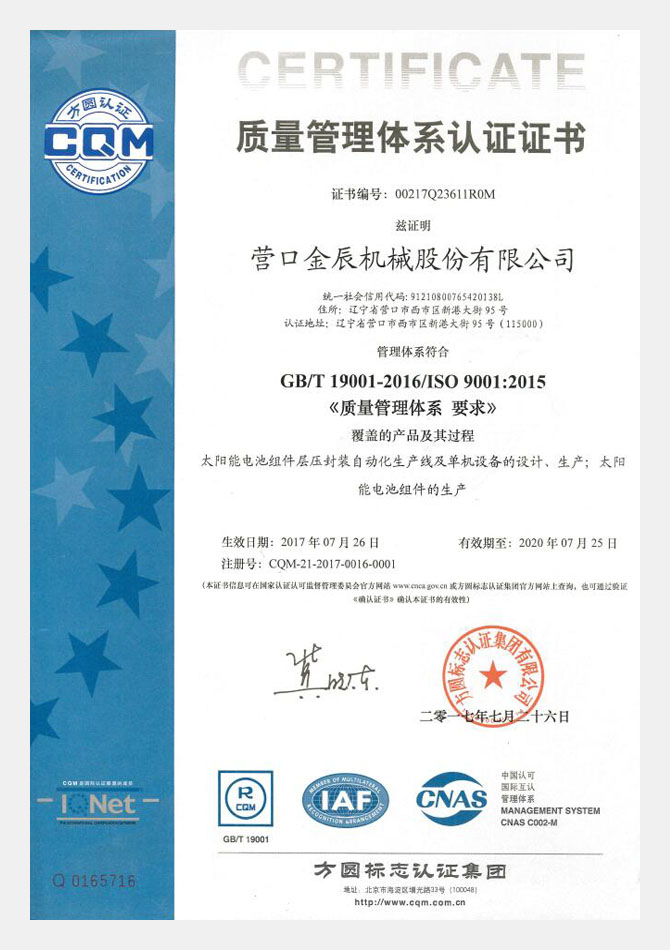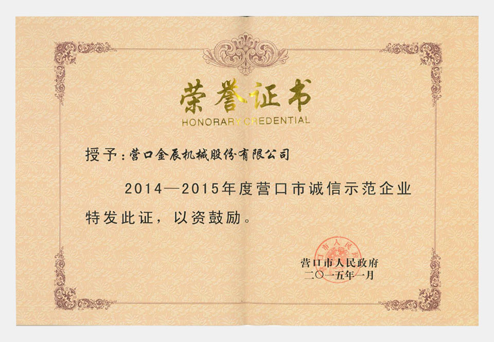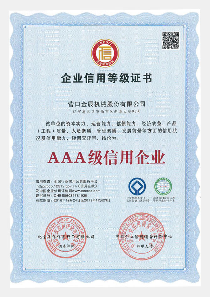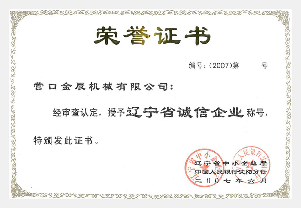 榮譽(yù)資質(zhì)-營(yíng)口金辰機械股份有限公司